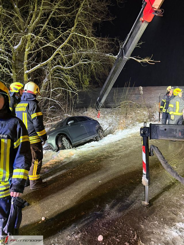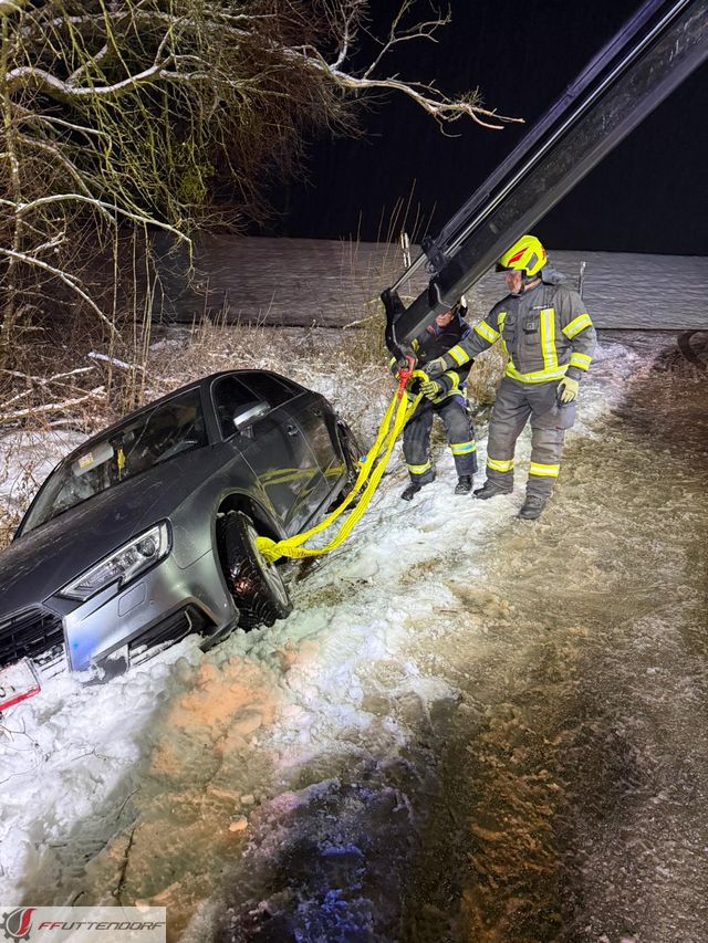 Auf Grund der winterlichen Straßenverhältnissen kam am 12.1. ein Fahrzeug von der Fahrbahn ab und landete an einer Böschung. Die FF-Uttendorf wurde seitens der Landeswarnzentrale zu diesen Ereignis alarmiert. Vor Ort wurde durch den Einsatzleiter, in Abstimmung mit dem Eigentümer, entschieden einen Abschleppdienst mit Kran zu organisieren. Mit den Mitteln der Feuerwehr bestand zu große Gefahr das Fahrzeug bei der Bergung noch weiter zu beschädigen. Die FF Uttendorf sicherte die Einsatzstelle während der Bergung und unterstütze den Abschleppdienst.